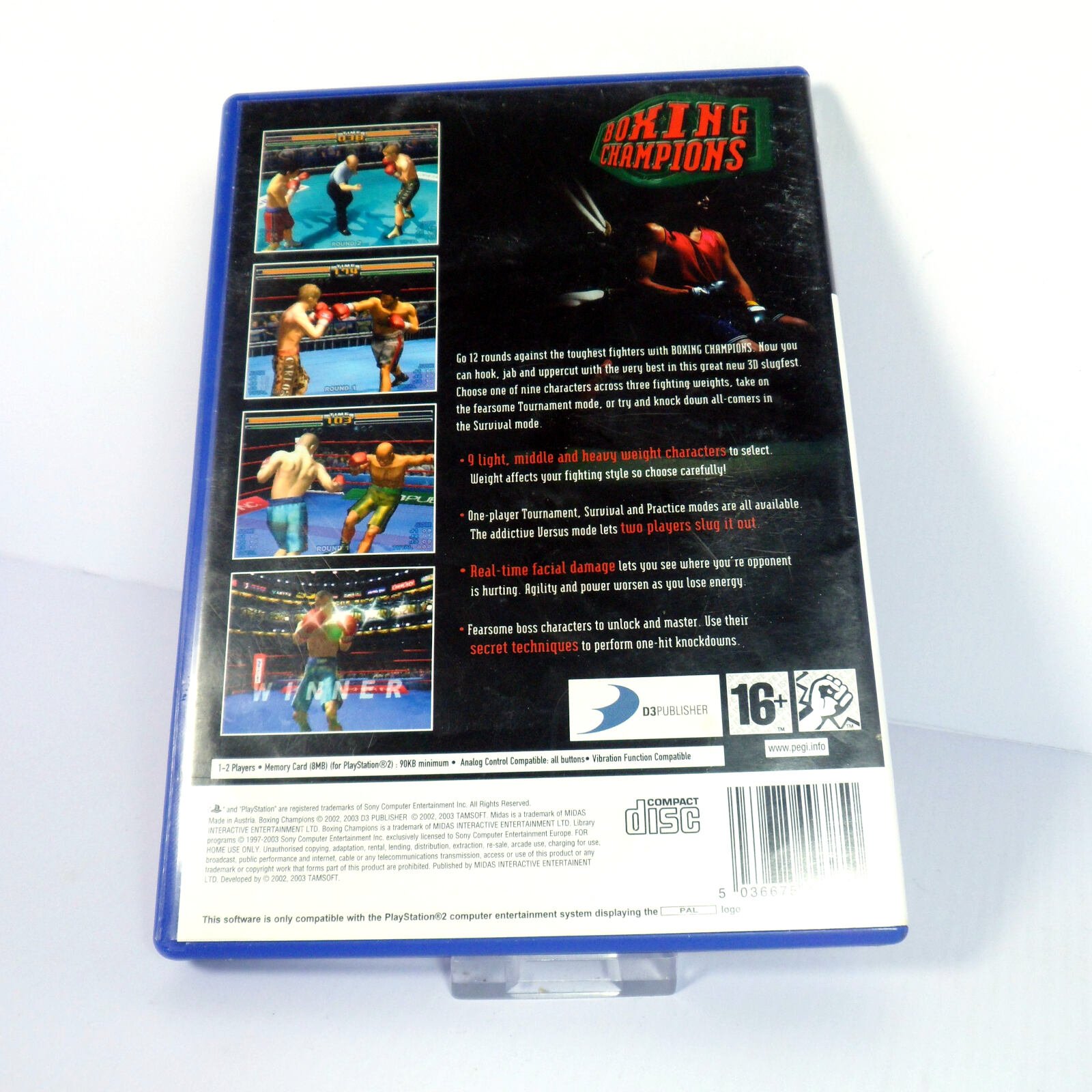 Boxing Champions on Sony PlayStation 2. Classic Sports game, with age-rating ‘PEGI 16’ and originally released in 2003.