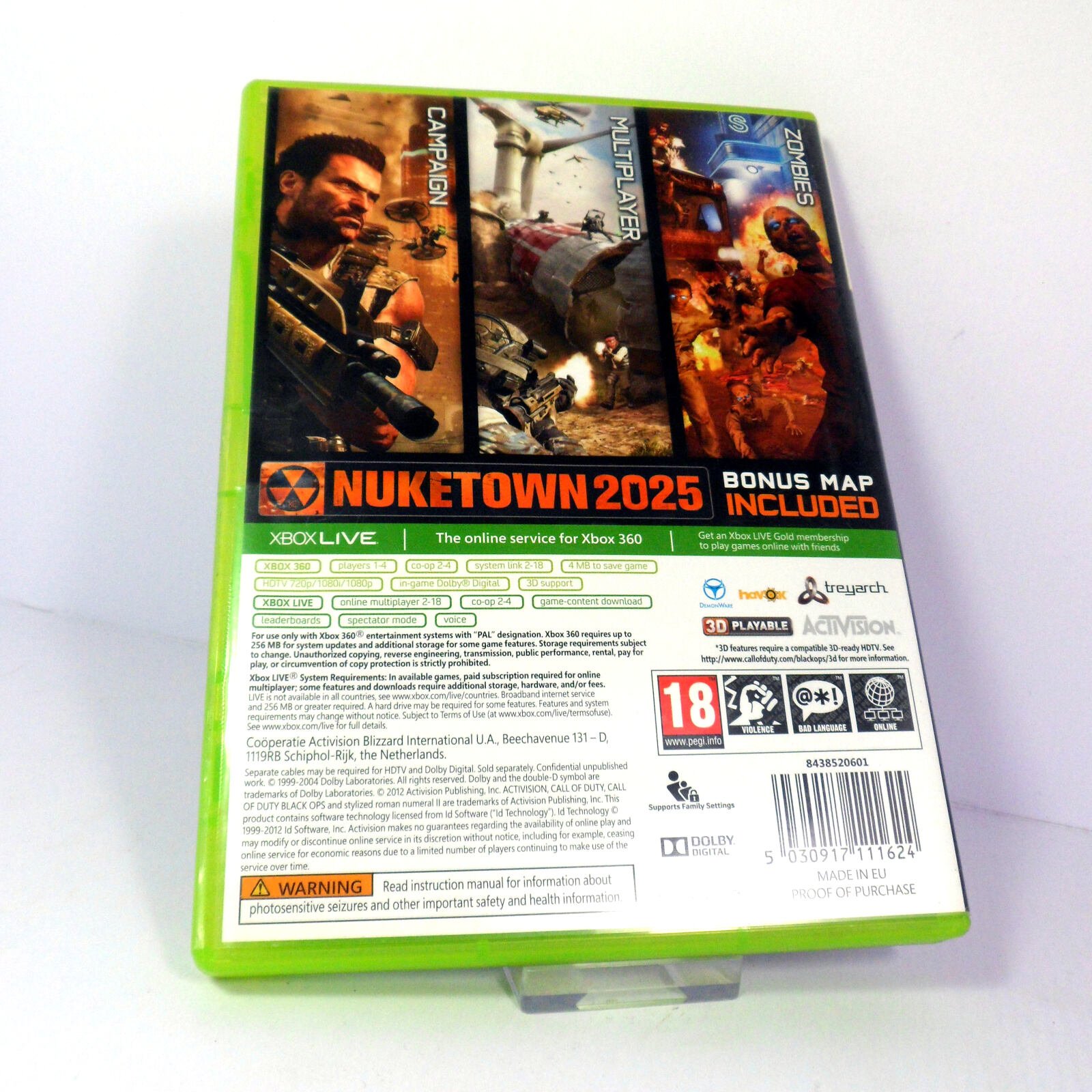 Call of Duty on Microsoft Xbox 360. Classic Shooter game, with age-rating ‘PEGI 18’ and originally released in 2012.