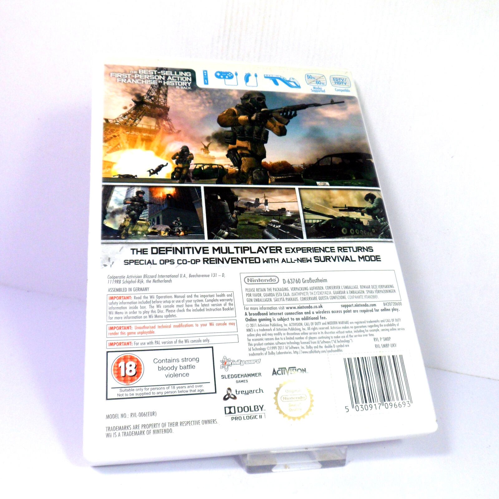 Call of Duty on Nintendo Wii. Classic Shooter game, with age-rating ‘PEGI 18’ and originally released in 2011.