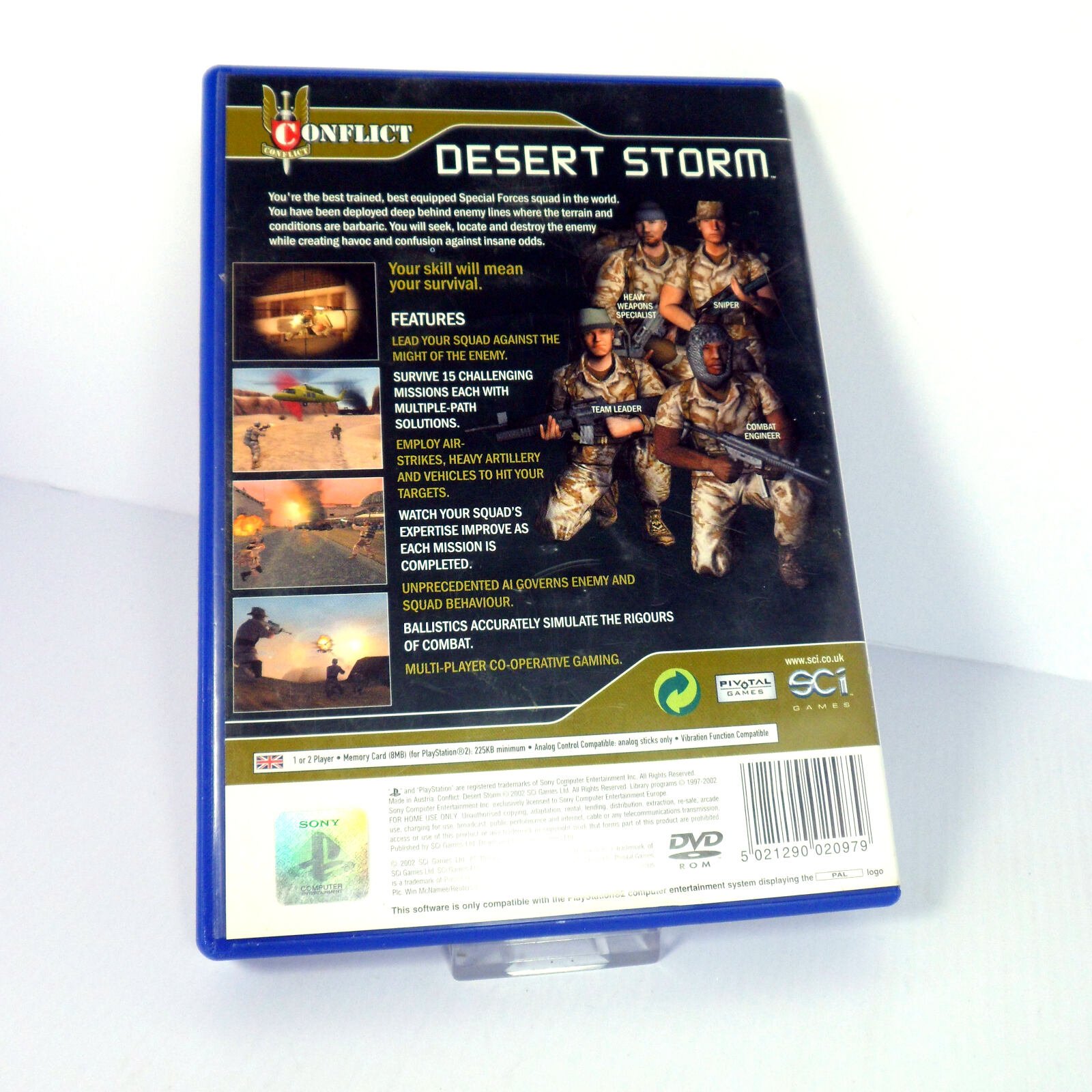 Conflict on Sony PlayStation 2. Classic War game, with age-rating ‘PEGI 16’ and originally released in 2002.