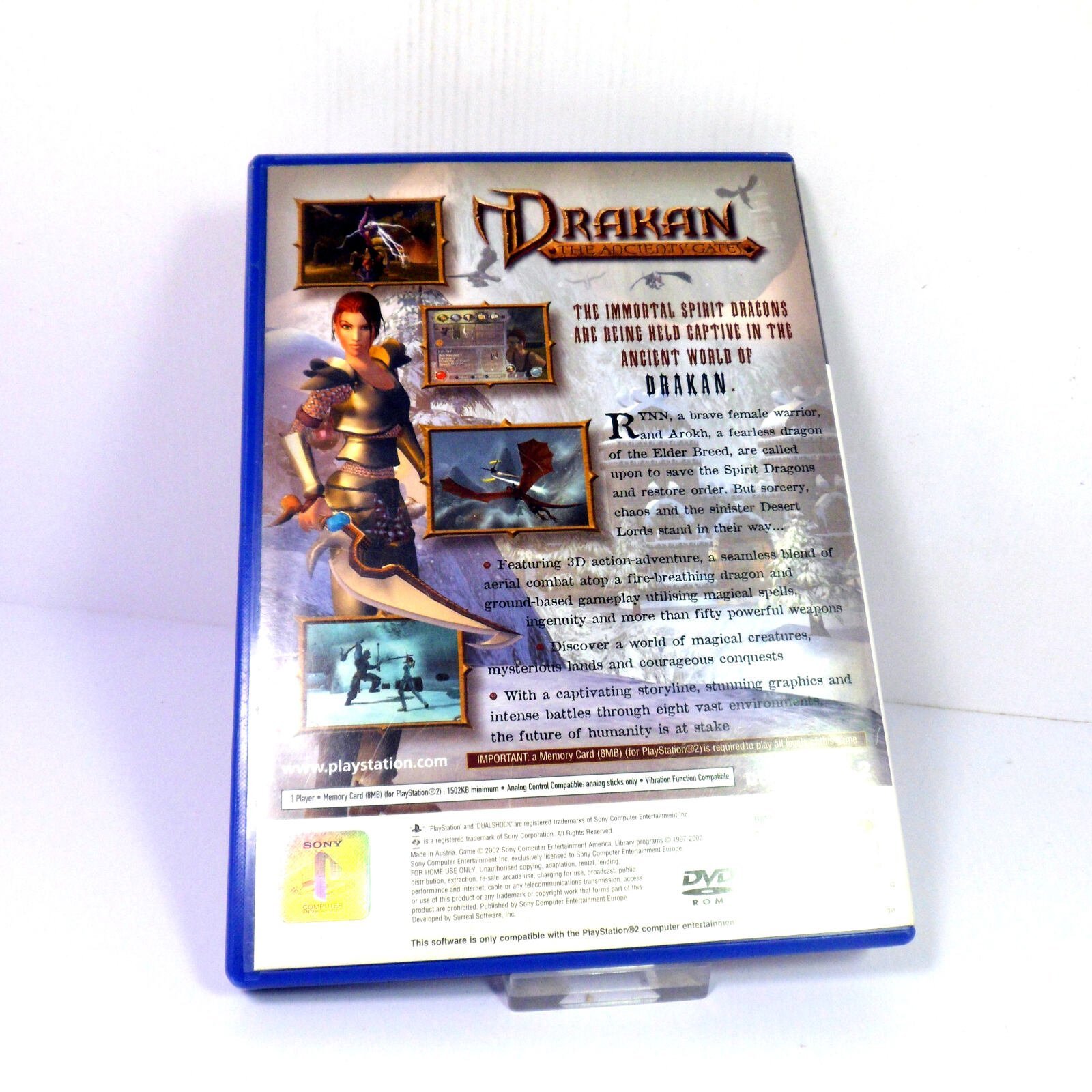 Drakan on Sony PlayStation 2. Buy this classic Action & Adventure game, originally released in 2002 from a trusted supplier of video games. We use professional disc-cleaners. Photos are stock photos and the item will match condition descriptors below. Unless stated, these are UK PAL GAMES, COMPATIBLE WITH UK, EU & AUSTRALIAN CONSOLES ONLY.