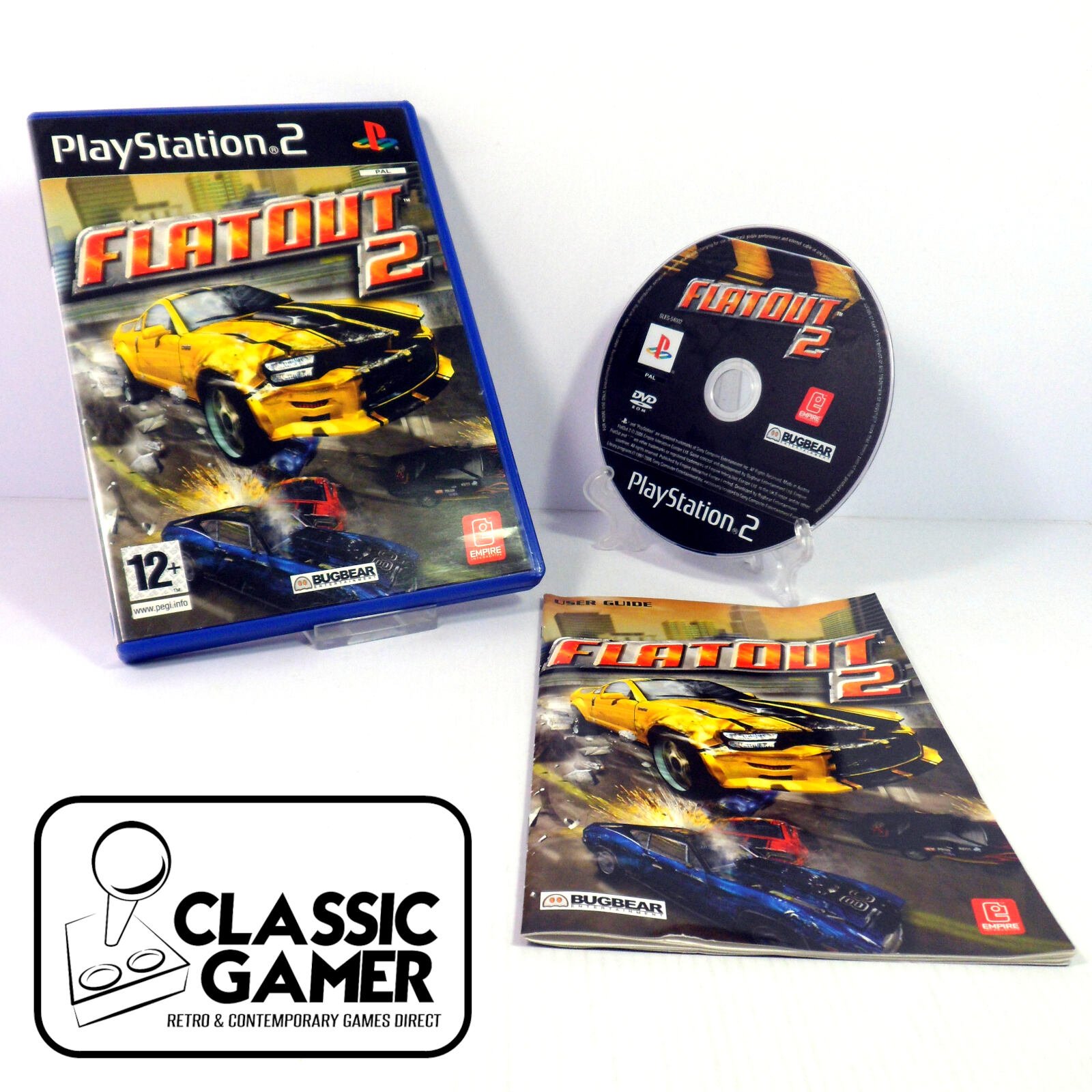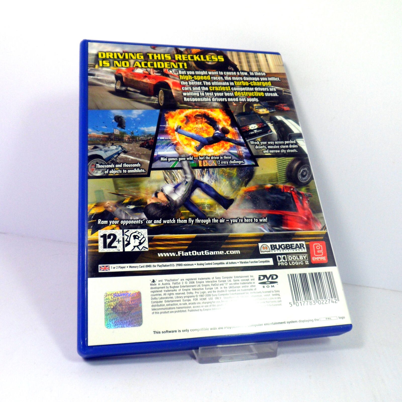 Flatout on Sony PlayStation 2. Buy this classic Racing game, originally released in 2006 from a trusted supplier of video games. We use professional disc-cleaners. Photos are stock photos and the item will match condition descriptors below. Unless stated, these are UK PAL GAMES, COMPATIBLE WITH UK, EU & AUSTRALIAN CONSOLES ONLY.