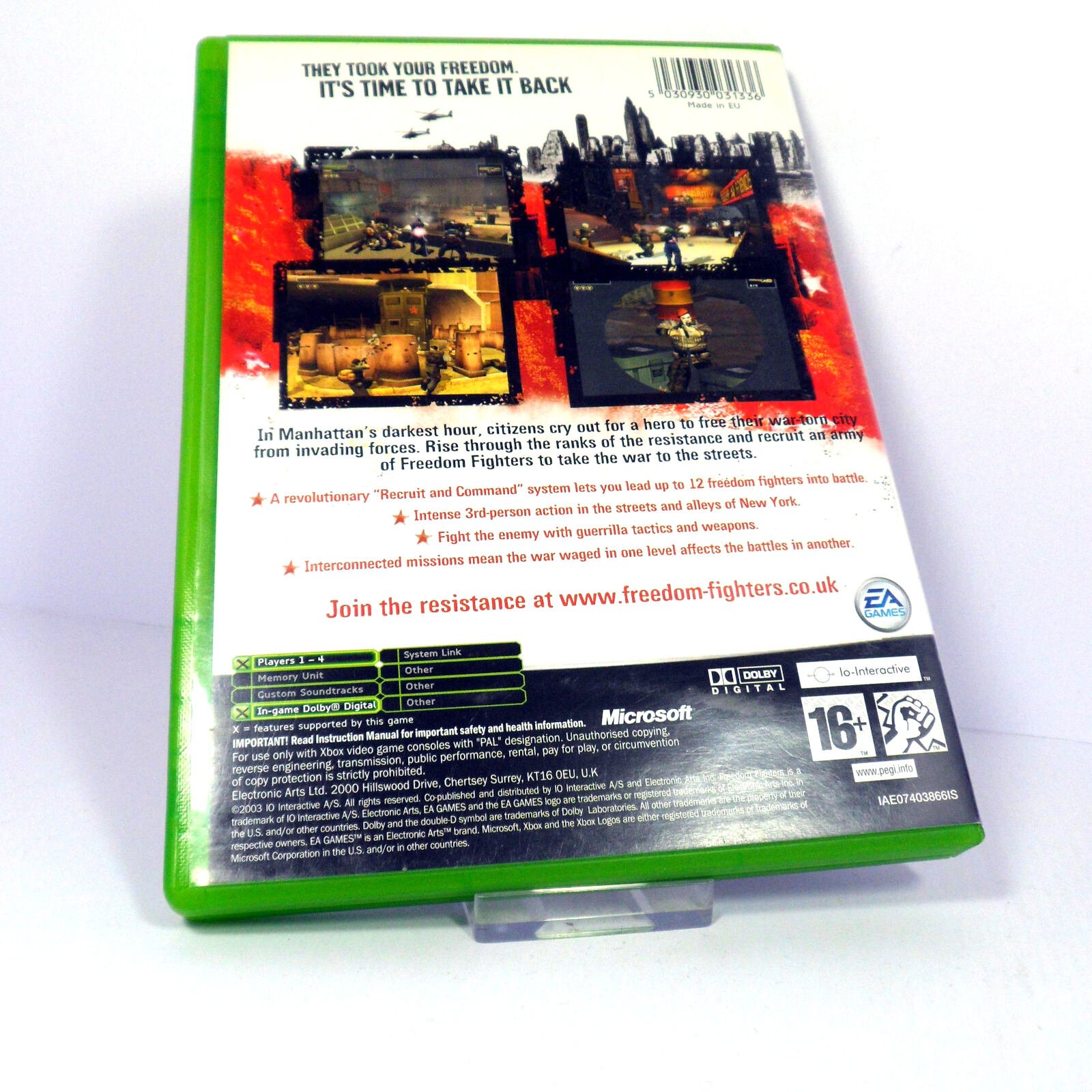 Freedom Fighters on Microsoft Xbox. Classic Shooter game, with age-rating ‘PEGI 16’ and originally released in 2003.