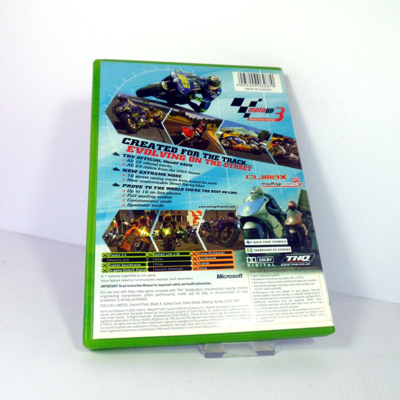 MotoGP on Microsoft Xbox. Buy this classic Racing game, originally released in 2005 from a trusted supplier of video games. We use professional disc-cleaners. Photos are stock photos and the item will match condition descriptors below. Unless stated, these are UK PAL GAMES, COMPATIBLE WITH UK, EU & AUSTRALIAN CONSOLES ONLY.
