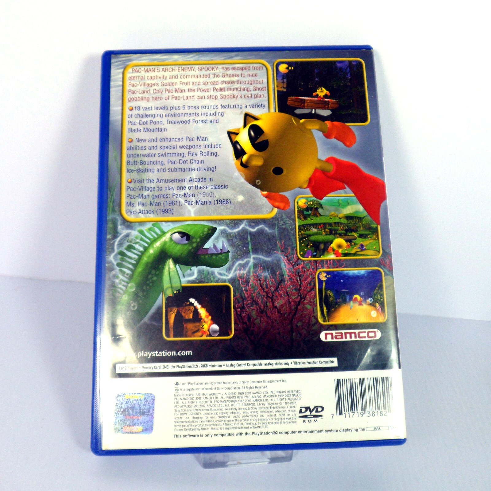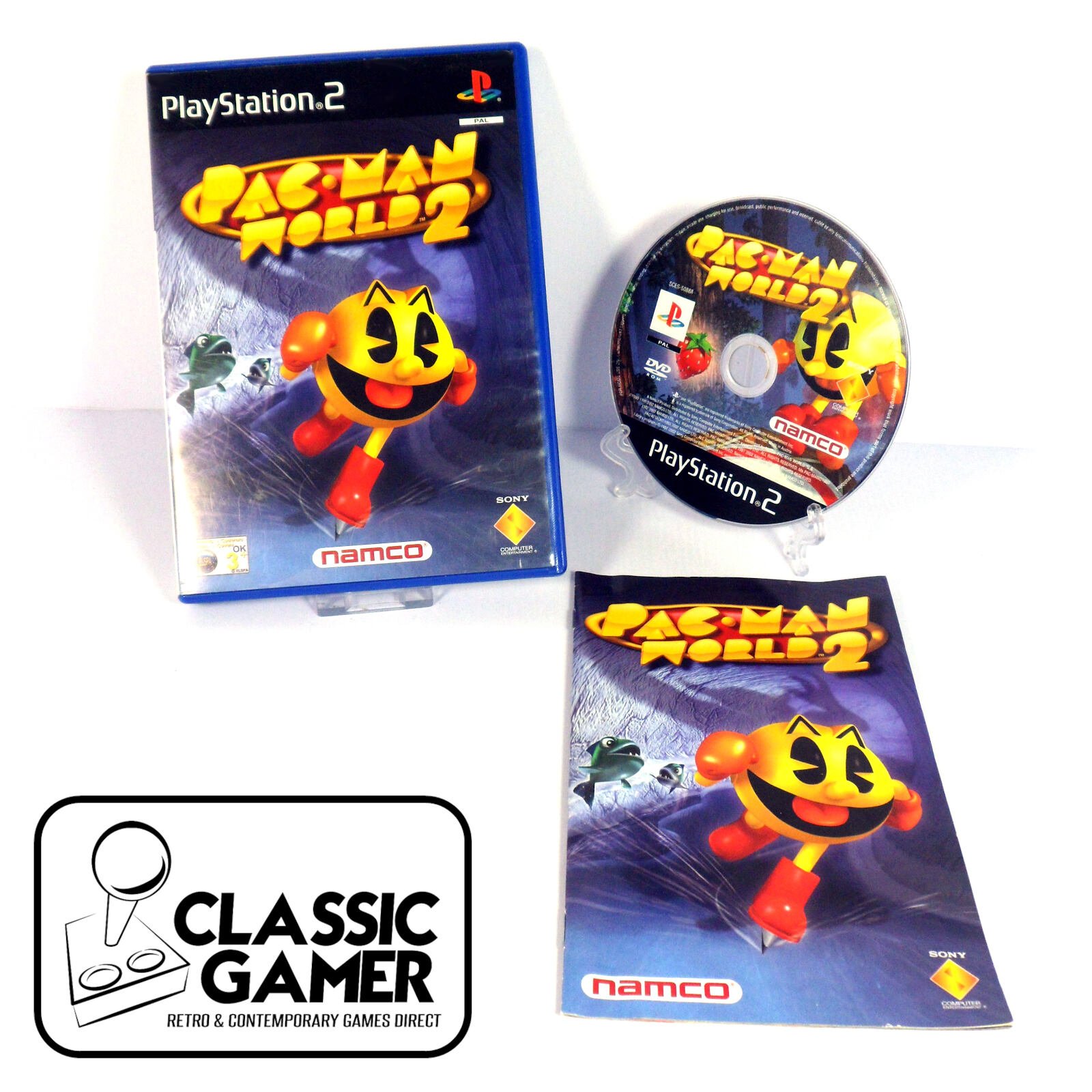 Pac-Man on Sony PlayStation 2. Buy this classic Arcade game, originally released in 2002 from a trusted supplier of video games. We use professional disc-cleaners. Photos are stock photos and the item will match condition descriptors below. Unless stated, these are UK PAL GAMES, COMPATIBLE WITH UK, EU & AUSTRALIAN CONSOLES ONLY.
