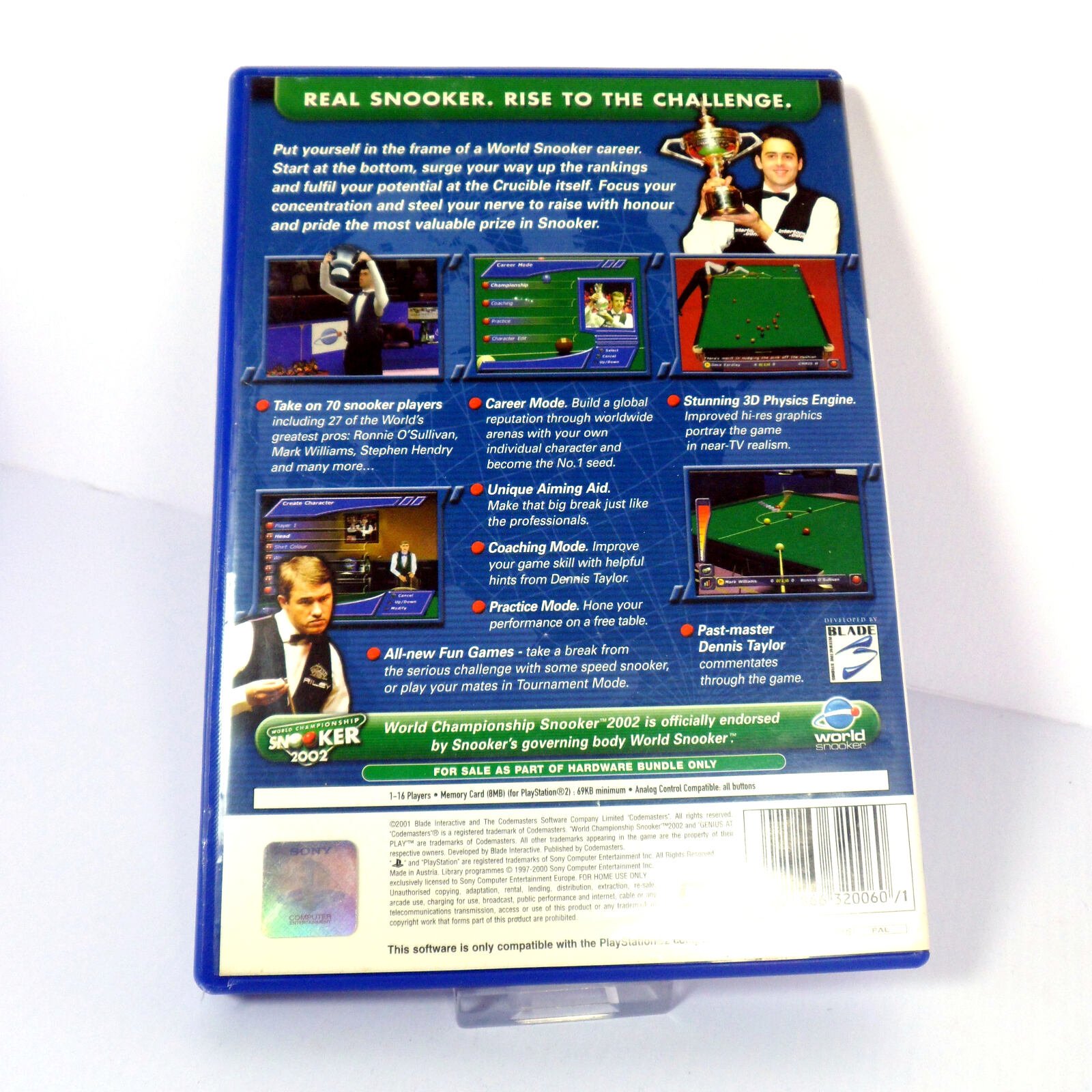 World Championship Snooker on Sony PlayStation 2. Buy this classic Sports game, originally released in 2001 from a trusted supplier of video games. We use professional disc-cleaners. Photos are stock photos and the item will match condition descriptors below. Unless stated, these are UK PAL GAMES, COMPATIBLE WITH UK, EU & AUSTRALIAN CONSOLES ONLY.